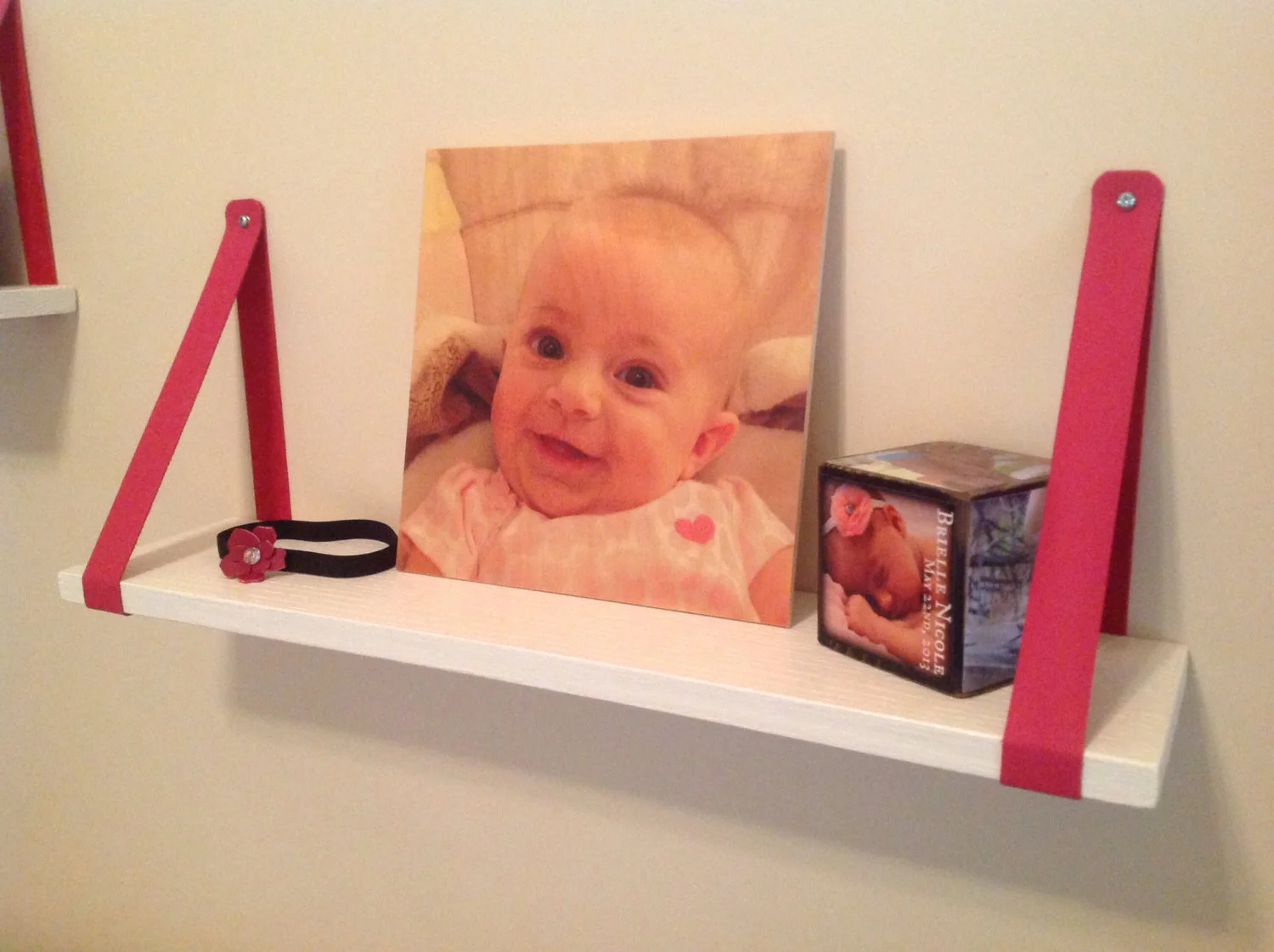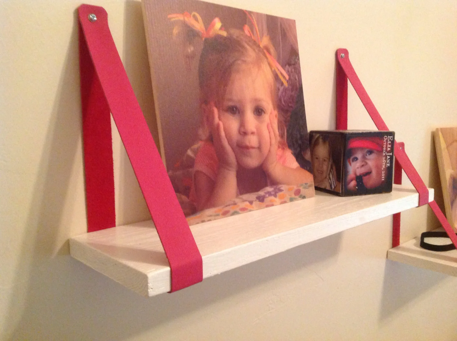 This listing is for 2 leather strap shelf hangers that will support a wide variety of shelf sizes.