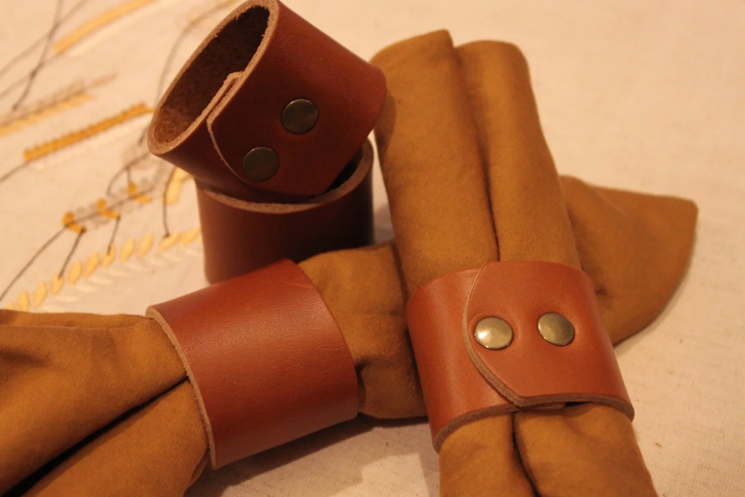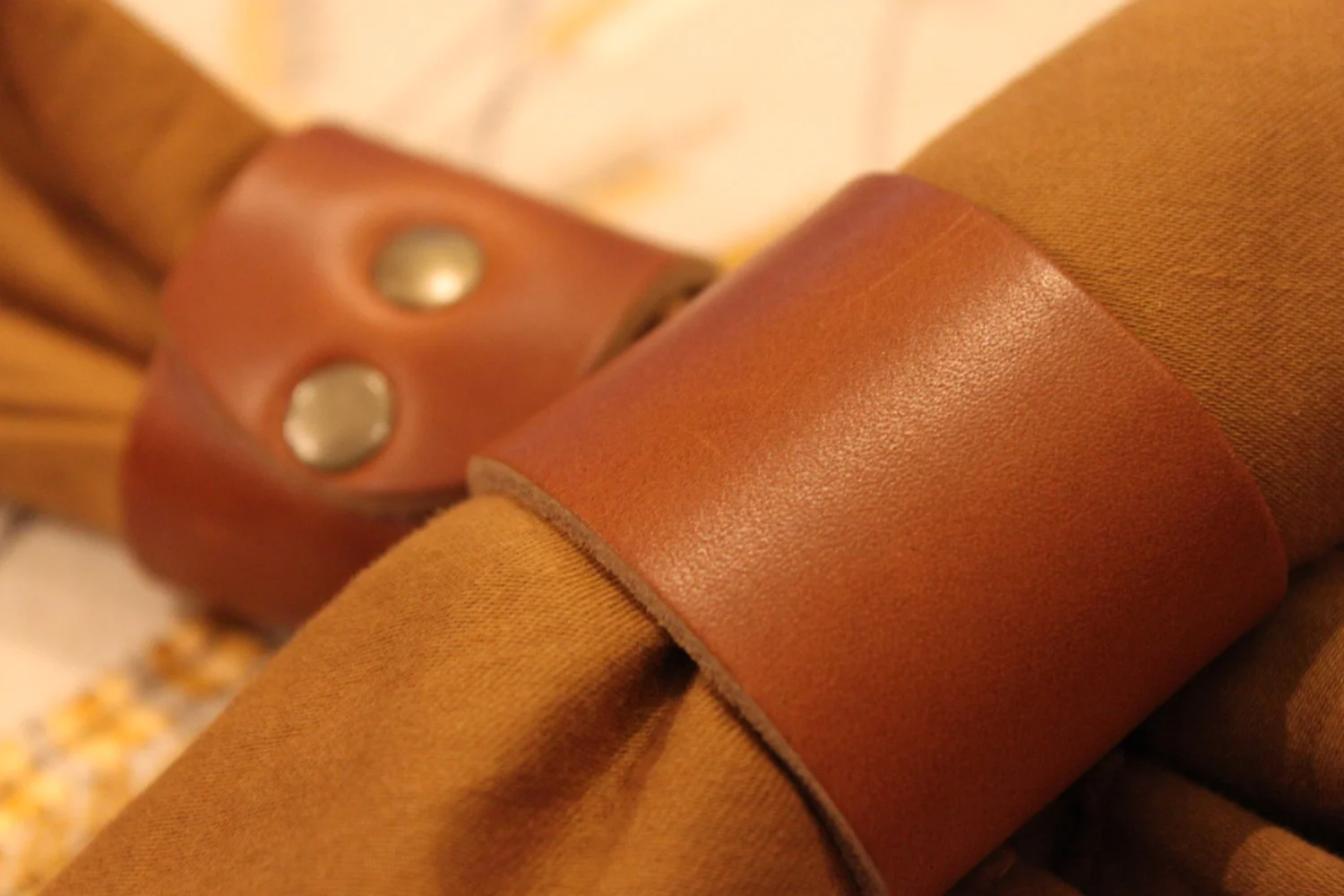 Made in USA: Set of 4 All Leather Napkin Rings - Classy and minimalist - light brown leather