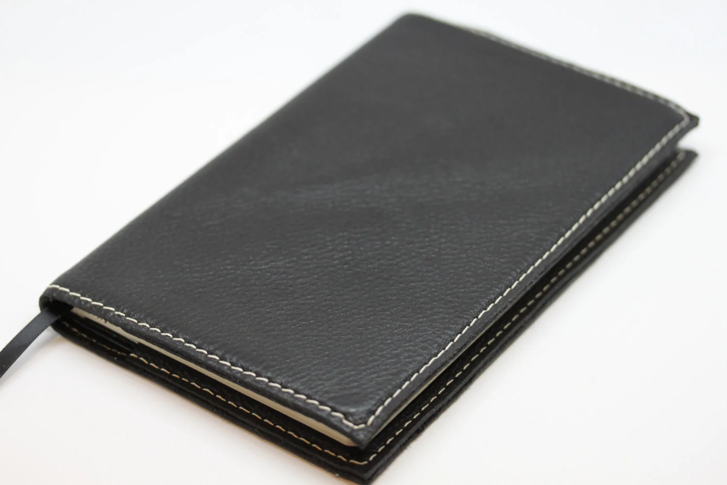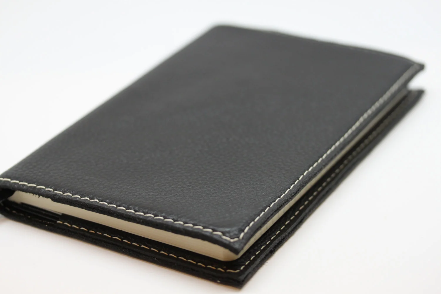 This Journal holder is made from a beautiful black leather.. The leather is soft, yet strong and of superb quality! The leather is wonderful to touch and smells like leather should!