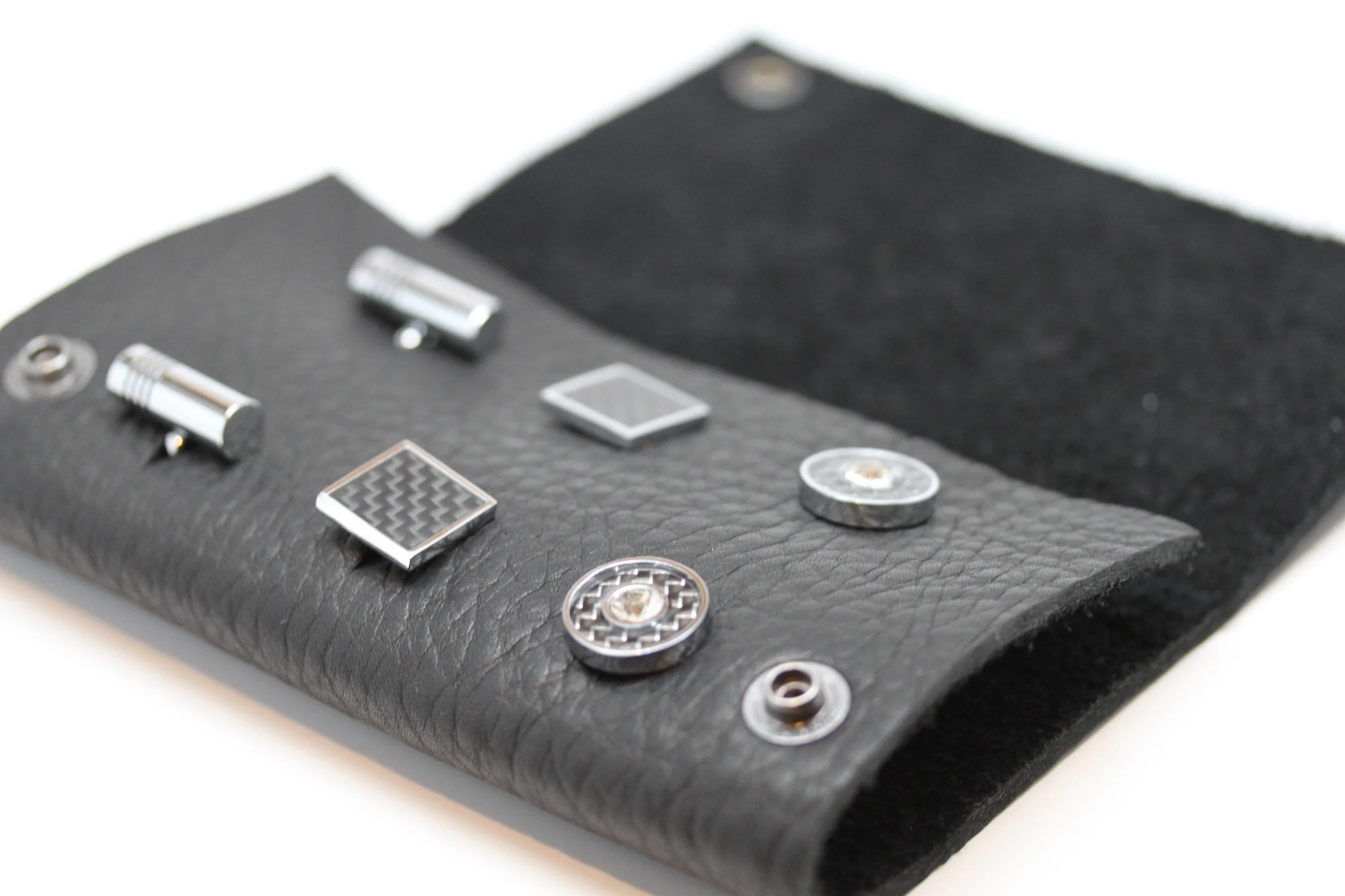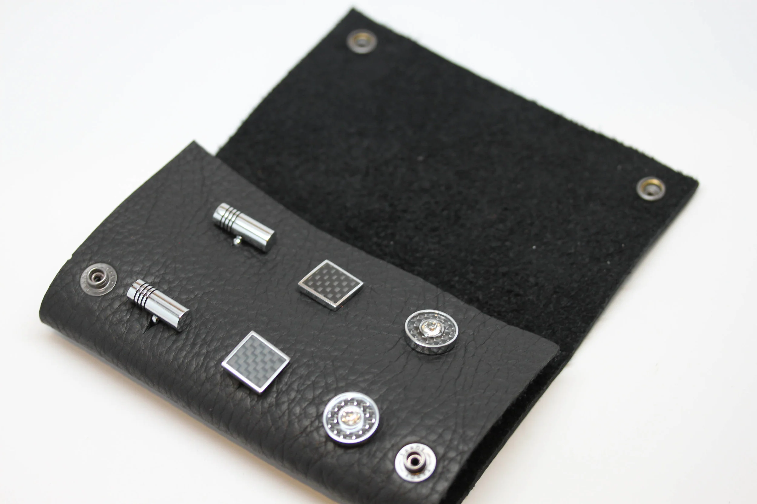 Made in USA: All leather cufflink wallet - mens travel wallet holder - fits 3 pair of cuff links