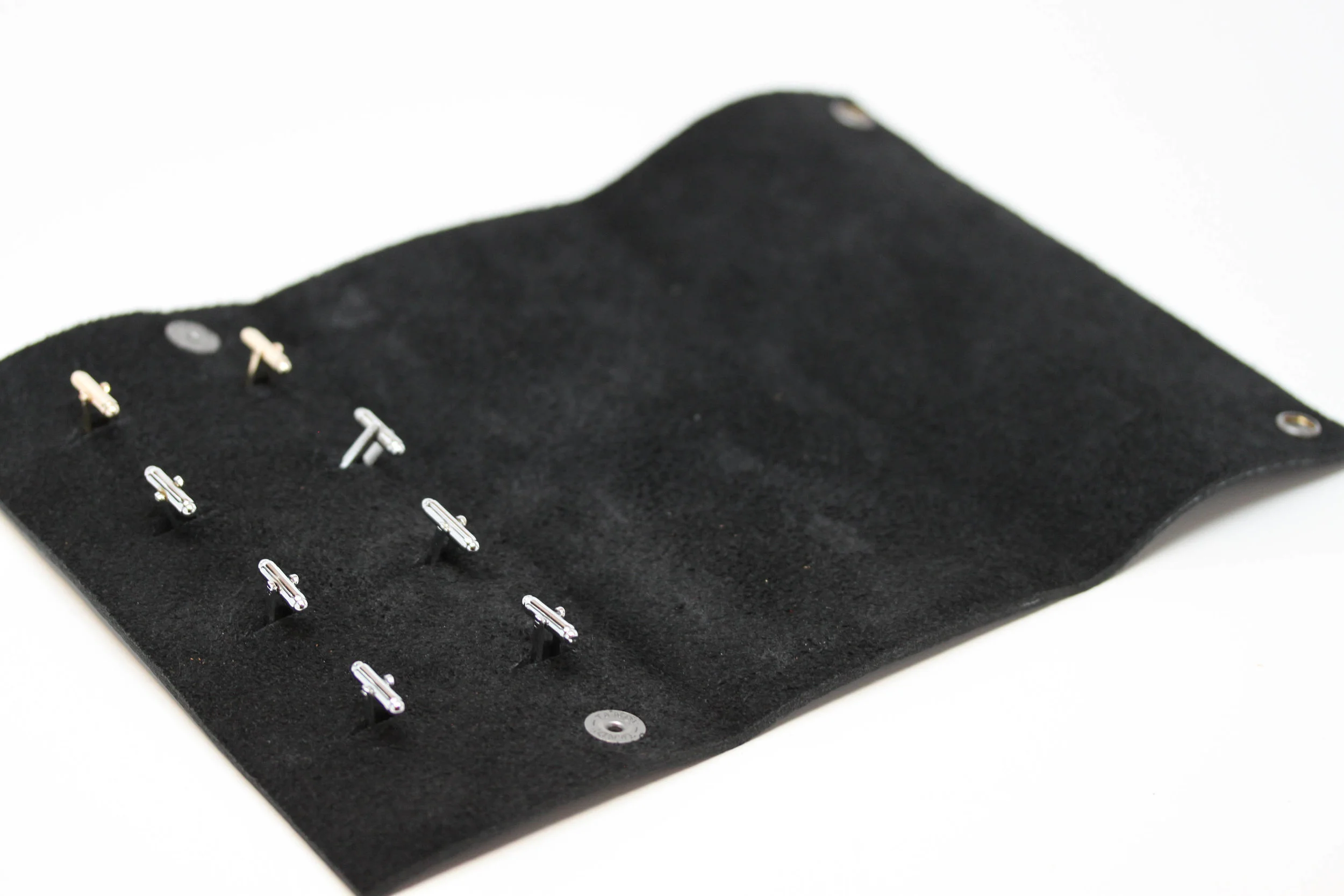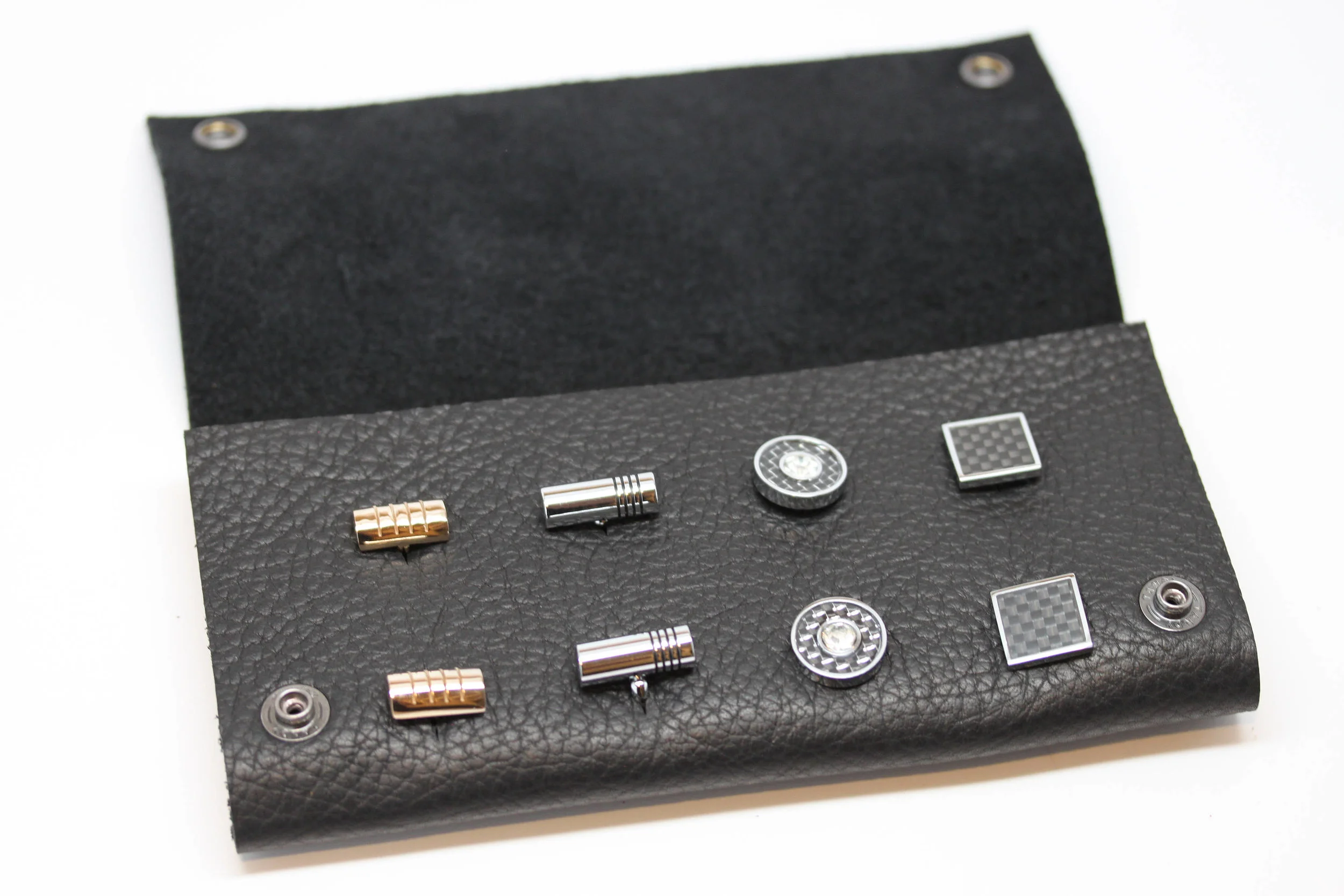 Made in USA: All leather cufflink wallet - mens travel wallet holder - fits 4 pairs of cuff links