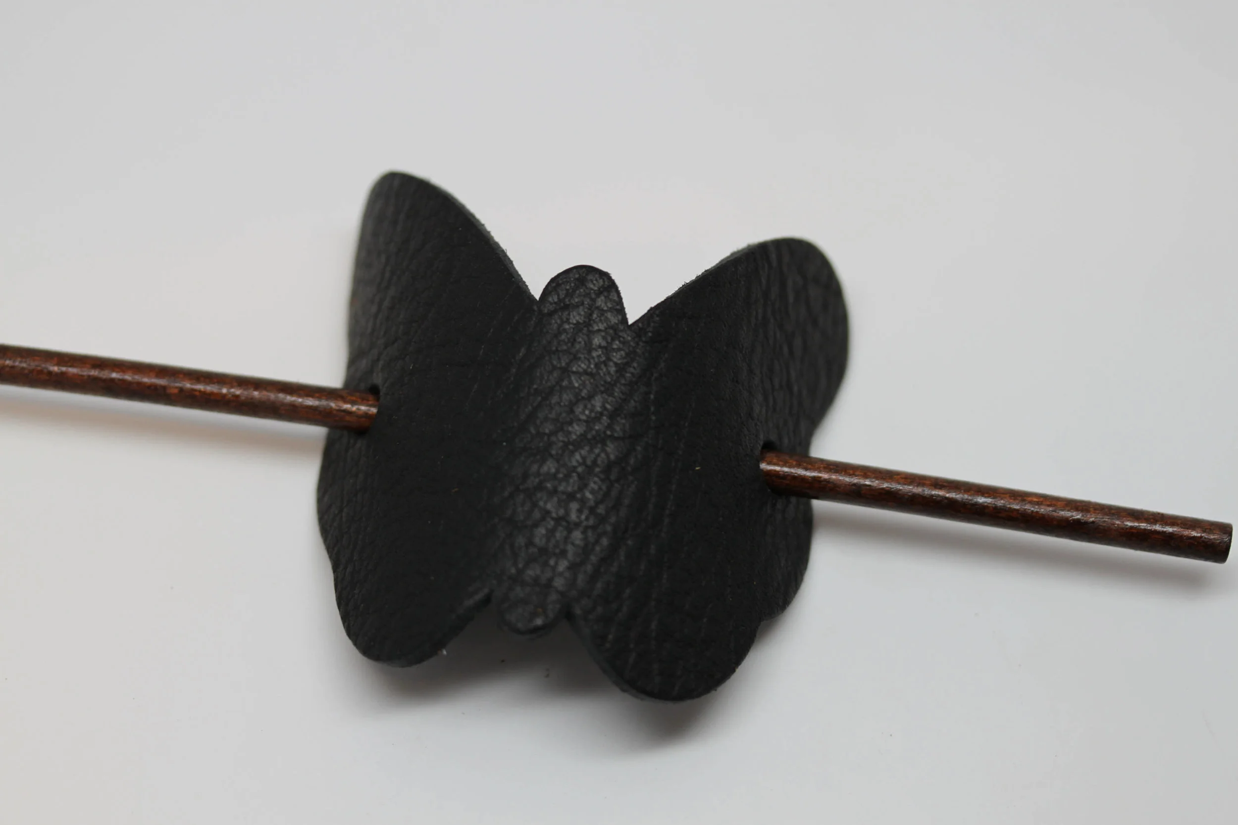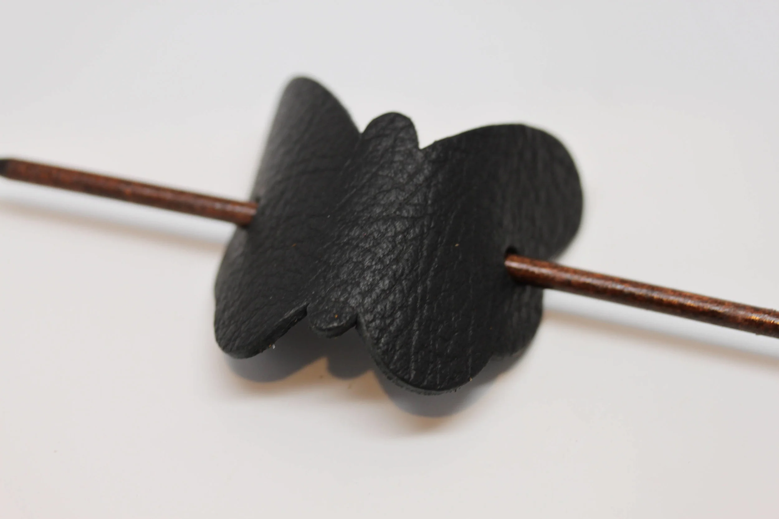 Simple and Unique: Black Leather Butterfly Hair Barrette with stick. Women's Hair Accessory Made in USA!