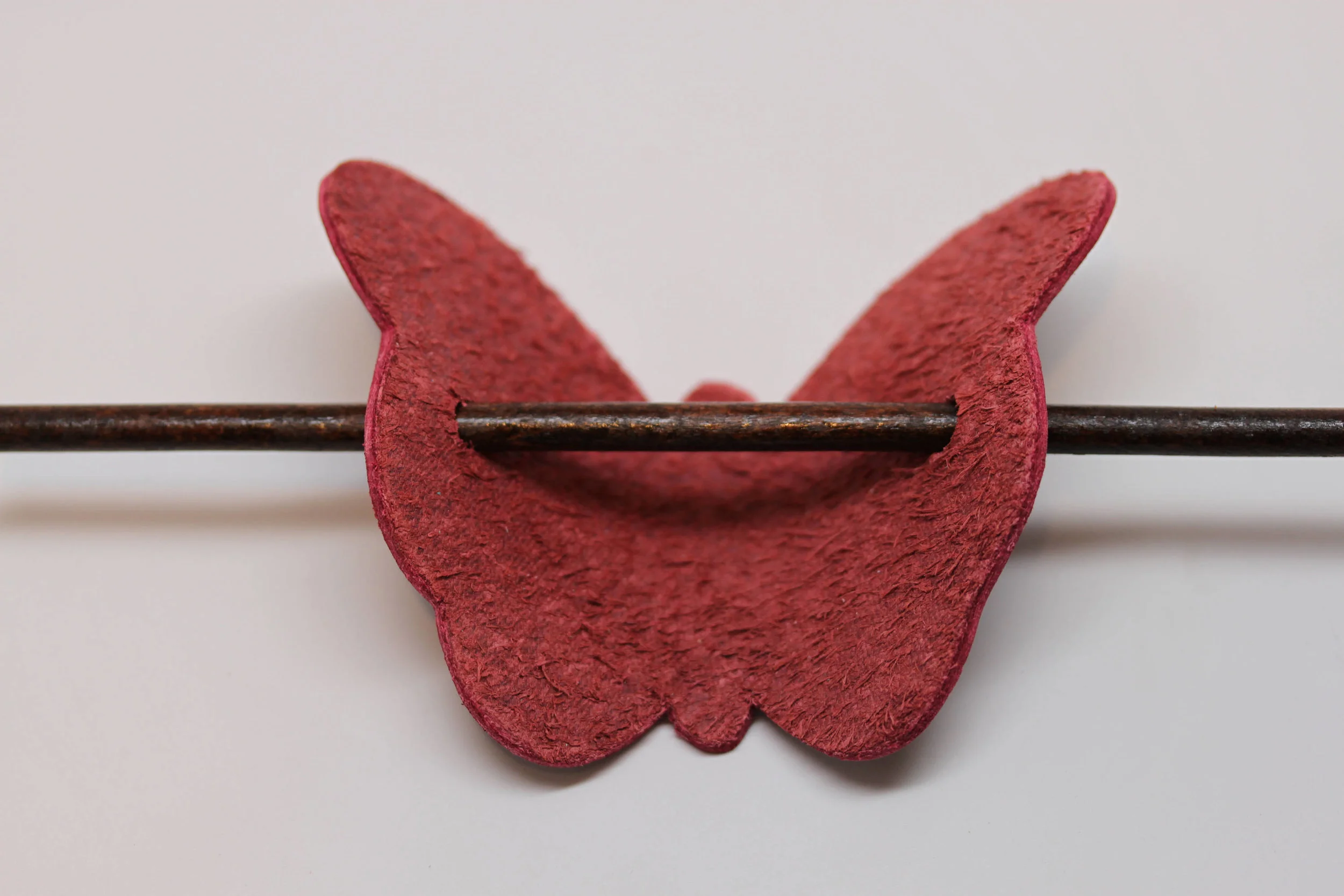 Simple and Unique: Deep Red Leather Butterfly Hair Barrette with stick. Women's Hair Accessory Made in USA!